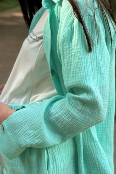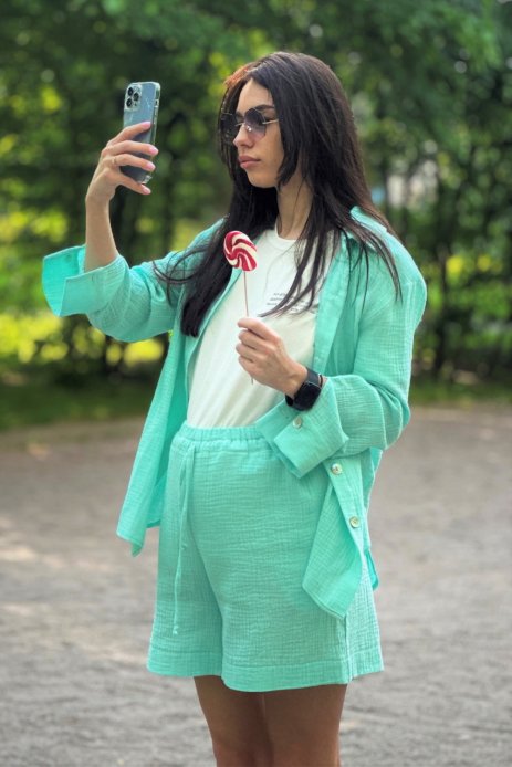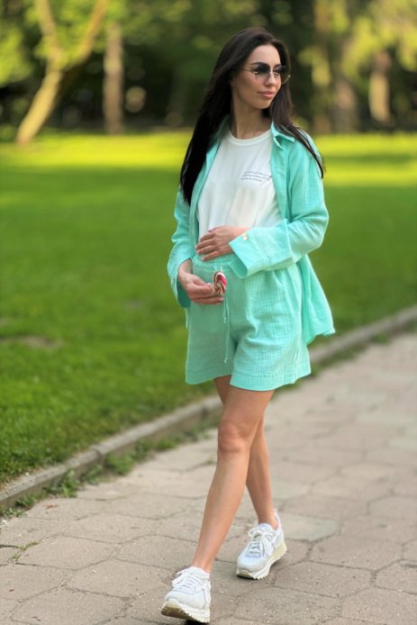 Жіночий костюм шорти з сорочкою з мусліну - це стильний та комфортний одяг. Костюм складається з двох основних частин: шортів і сорочки.