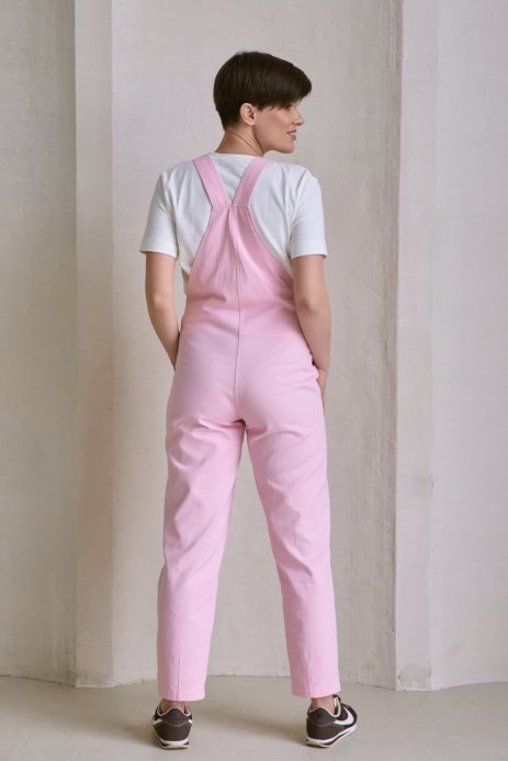 Рожевий колір додає образу легкості. Комбінезон легко комбінується з базовими футболками або топами, створюючи універсальні повсякденні образи.