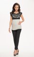 Сочетание благородного кружева и струящейся вискозы, наделяет изделие неповторимой изысканностью и элегантным лоском. Прямой фасон с короткими рукавами, вырез-лодочка с окантовкой, и незаметная молния по середине, для удобства при кормлении малыша – в этой блузе Вы будете неповторимы! Сыграйте на контрасте: дополните эту модель массивными аксессуарами в темных тонах, так Ваш наряд станет более выразительным.