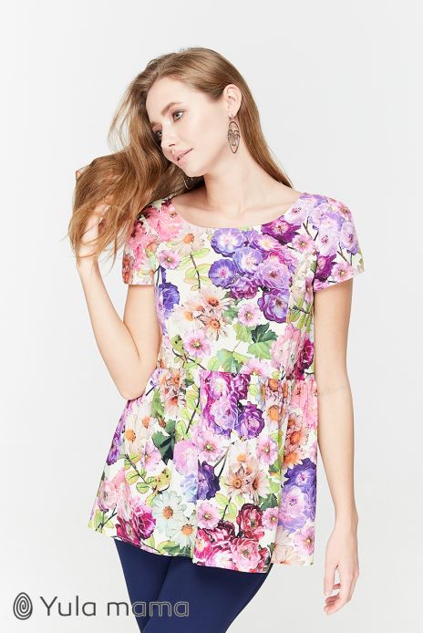 Блуза Remy для беременных и кормящих экрю яркие цветы BL-29.041