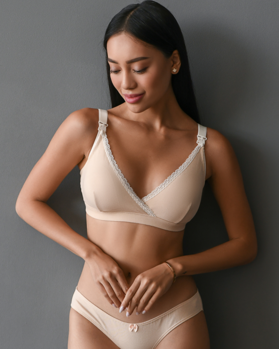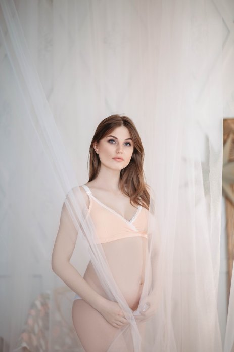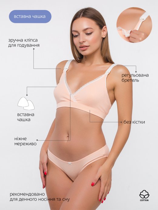 Модель бюстгальтера для беременных и кормящих из эластичного хлопкового трикотажа. Специальный крой чашечки со специальной вшивной поддержкой, которая переходит в широкую бретель, не давит и не впивается, отлично поддерживает налитую грудь. Модель имеет удобную специальную застежку, которая позволяет отстегивать и застегивать чашечку одной рукой. Мягкие швы бюстгальтера для кормления не раздражают чувствительную кожу. Акцентным украшением модели является маленький бант. Бюст элегантный и чувственный, отлично поможет создать утонченный соблазнительный образ.