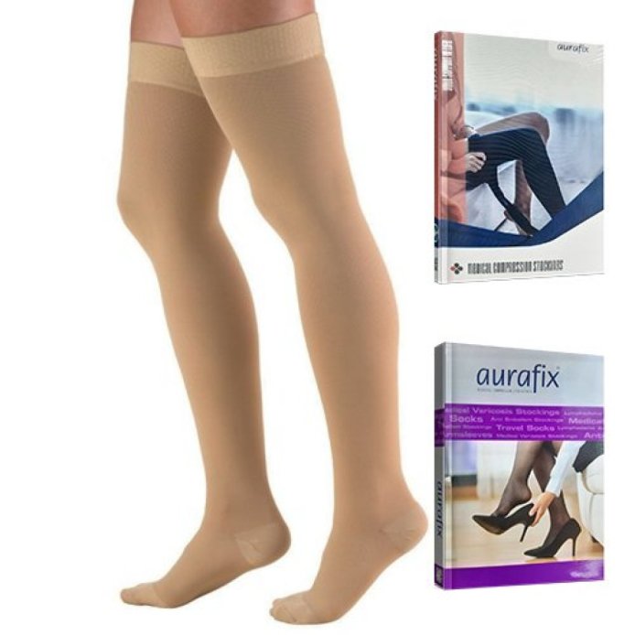 - компрессионные чулки Aurafix изготовлены из прочной, долговечной ткани Öko-Tex 100, в соответствии с международными стандартами TS ENV 12718;