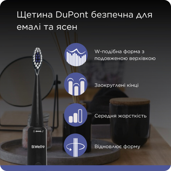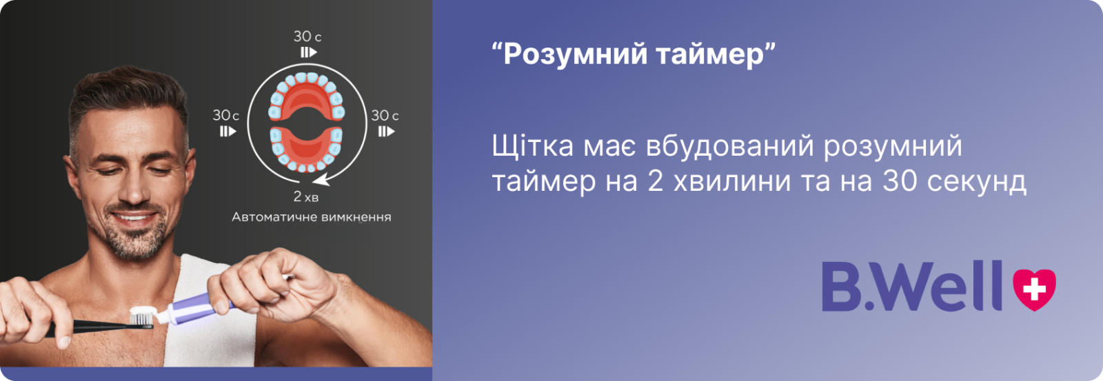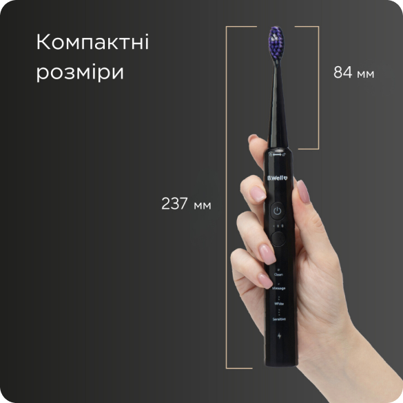 Електрична зубна щітка B.Well підійде кожному користувачу, завдяки індивідуальному налаштуванню та вибору режима. Звукова зубна щітка MED-870 безпечна для пломб, мостів, імплантів, коронок і брекетів.