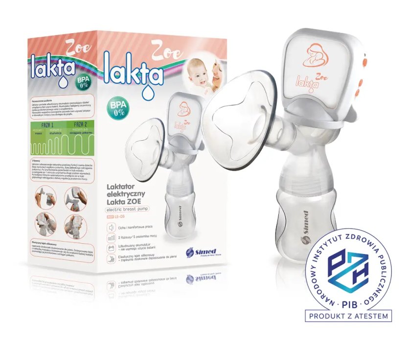 Молокоотсос Lakta ZOE Simed изготовлен из безопасных материалов и не содержит BPA.