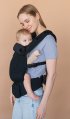 - Обеспечивает физиологически правильное положение ребенка (поза "лягушки") + три позиции для переноски: спереди, на спине и на боку.