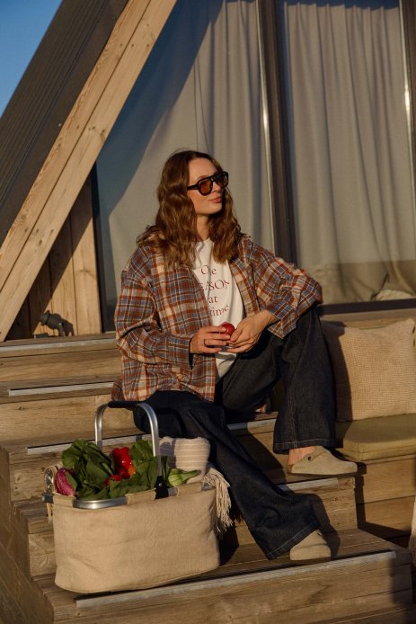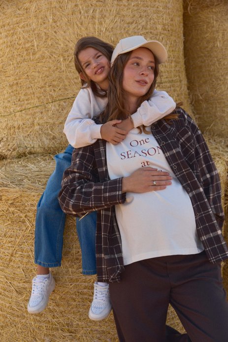 Принт “One season at time” - “один сезон за раз” - це про те, що все має свій час. Не треба встигати “все й одразу”, кожен період має свій ритм. Це принт-нагадування - нормально рухатися повільно, зупинятись, адаптовуватись. Адже у материнстві немає поспіху.