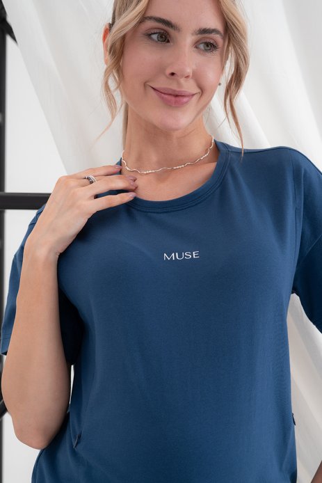 Футболка MUSE для беременных и кормящих синий NR-35.015