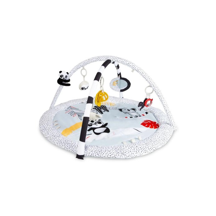 Має 6 іграшок, які можна відкріпити, заохочують малюка тягнутися ручками. Велике дзеркальце, яке знімається - викликає цікавість та продовжує час лежання на животі. Можливість пізнавати світ з різних перспектив - інтерактивні елементи стимулюють органи чуття малюка: