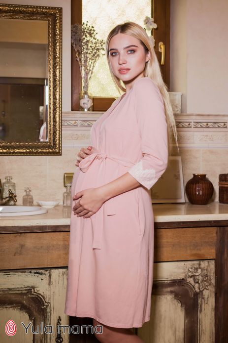 Прекрасный комплект для дома и роддома: халат+ночная сорочка! Выполнен из приятного к телу, мягкого и уютного хлопкового трикотажа. Халат с запахом на поясе, не имеет пуговиц, на завязках, за счет чего хорошо садится по фигуре. Рукава три четверти. Короткая однотонная ночная сорочка, облегающий лиф с поддержкой груди (можно не использовать бюстгальтер), украшена контрастным ажурным кружевом, удобна как во время сна, так и при кормлении ребенка. Универсальность и удобство этого фасона позволяет носить комплект на протяжении всего срока беременности. Блаженство и состояние релакса подарит Вам этот новый комплект!