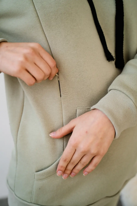 Стильный спортивный костюм для беременных и кормящих мам из плотного трикотажа на флисе. Верхняя часть костюма прямого свободного кроя с вместительным карманом-кенгуру. В модели продумана весьма полезная деталь - секрет кормления спрятан змейками. Расстегнув потайную молнию, вы сможете удобно покормить малыша. Рукава и низ изделия на манжете. Пояс комбинированный: бандаж + высокий хлопковый трикотажный пояс с перфорированной резинкой, позволяют носить эту модель во время и после беременности (предварительно убрав высокий пояс). Штаны зауженного кроя с манжетами и карманами. Практичный костюм отлично подойдет для повседневной носки. Качественная ткань, актуальный фасон и практичный оттенок - все это позволит ощутить максимум комфорта. Разбавьте новой моделью Ваш гардероб в магазине Mamacity!