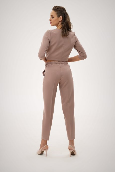 Штани — прямого крою зі зручною посадкою, що делікатно адаптується до змін фігури.