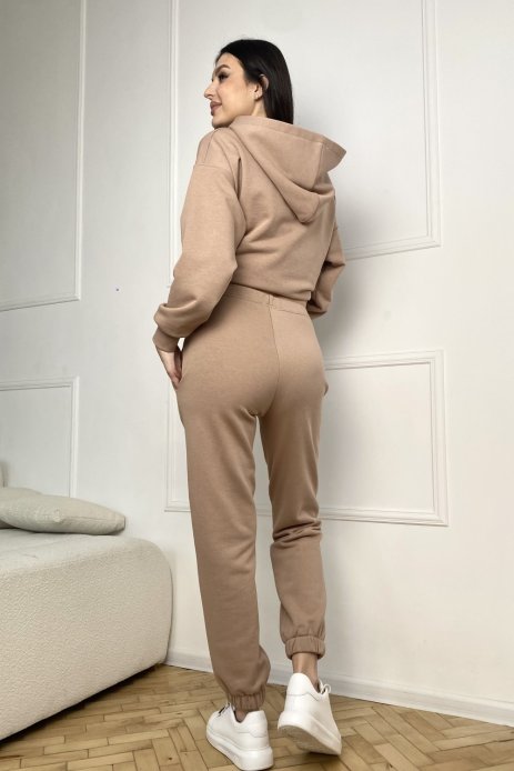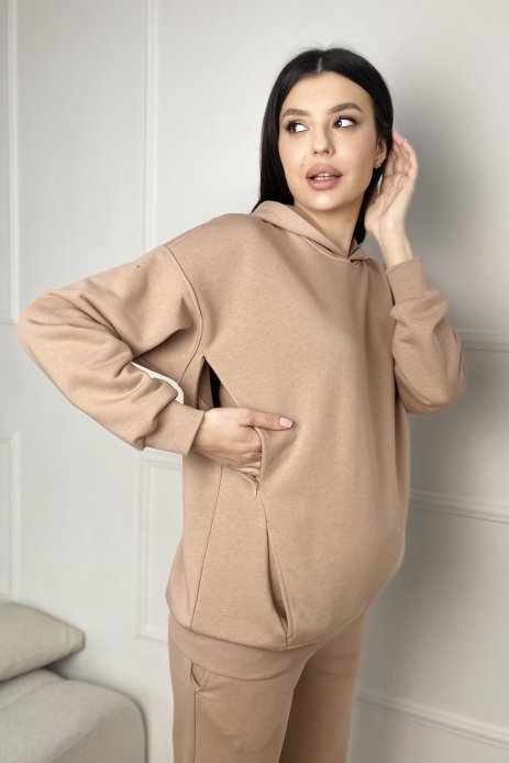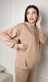 Костюм виготовлений з якісного трикотажу. Худі з капюшоном, з прихованими застібками, які дозволяють зручно та легко годувати малюка. Штани мають високу трикотажну вставку і резиночку, яка регулюється по мірі росту животика, що забезпечує додатковий комфорт.