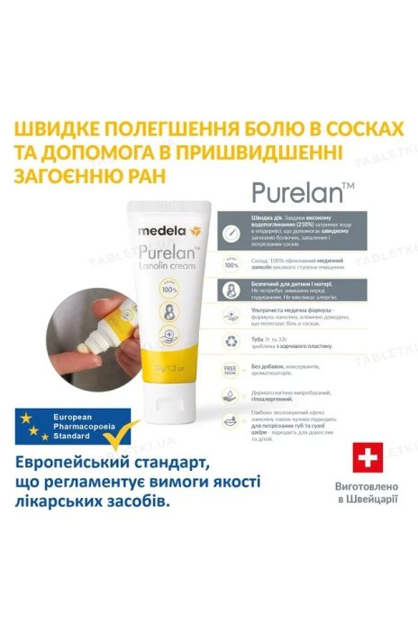 Засіб з ланоліну Purelan заспокоює і захищає сухі, потріскані або запалені соски. Засіб містить натуральні інгредієнти і є безпечним при годуванні грудьми для Вас і Вашого малюка