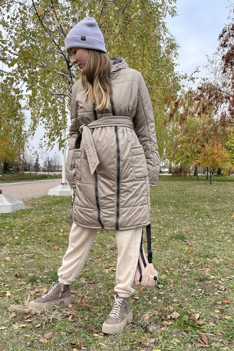 Такую модель, по задумке дизайнера и под собственное настроение, можно носить на две стороны, которые выполнены зеркально, но обыграны разными цветами (однотонный беж и оригинальный норвежский принт "олени"), при этом обе они дополнены интересным решением - на однотонной стороне карманы накладные, а на принтованной - карманы на молниях. Оба варианта весьма удобны, смотрятся стильно и красиво. После окончания беременности такое пальто можно носить как обычное изделие, подвязывая пояс, который прилагается в комплекте. Утепляемся стильно в магазине Мamacity!