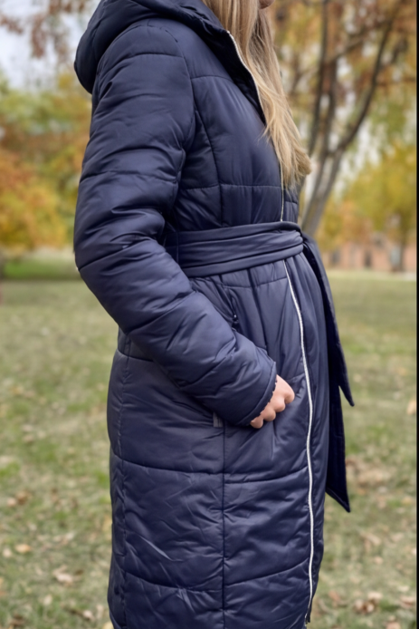 Универсальное длинное зимнее двухстороннее пальто 2в1 для беременных. Выполнено из плащевки лаке на силиконе. При помощи специальной дополнительной вставки стильное молодежное пальто легко превращается в изделие для беременных, рассчитанное на любой срок. Специальная вставка крепится при помощи легко застегивающихся молний. По бокам небольшие разрезы, капюшон объемный, не отстегивается. Рукава можно подворачивать и делать манжеты.