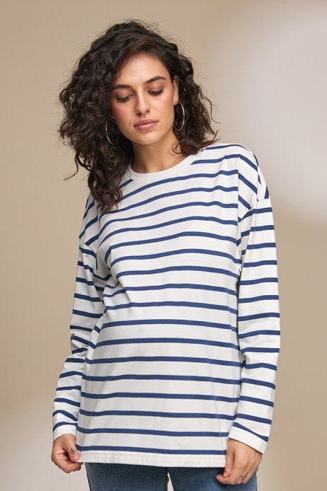 Лонгслив NIKITA для беременных и кормящих синяя полоса NR-31.031