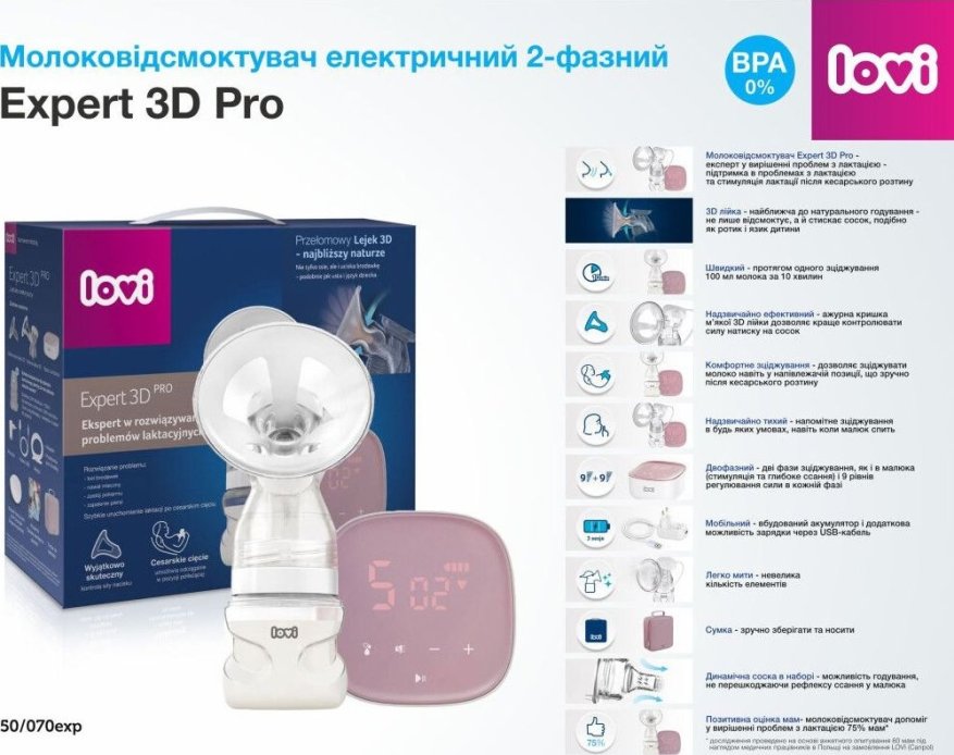 Молоковідсмоктувач електричний 2-фазний Expert 3D Pro від LOVI - експерт у вирішенні проблем з лактацією - підтримка в проблемах з лактацією та стимуляція лактації після кесарського розтину.