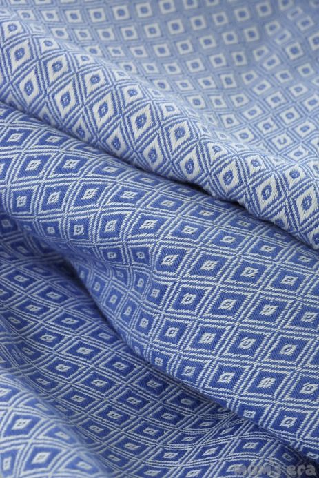 Май-слинг изготовлен из шарфовой ткани (алмазного плетения) плотностью 240 гр/м2, имеет широкие лямки, что приближает его к слинг-шарфу, но при этом гораздо удобнее в завязывании. Май слинг вобрал в себя все достоинства слинг-шарфа (отлично держит вес), за это его еще называют шарфомай.