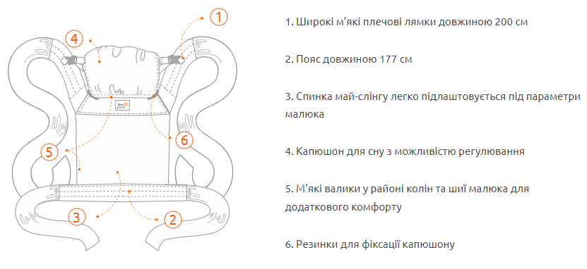- Три позиции для ношения: спереди, на спине и на боку