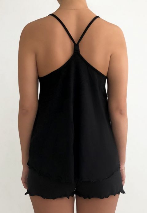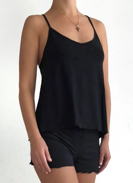 Изящность этого комплекта просто завораживает! Выполнен из очень нежного и приятного на ощупь тончайшего модала. Благодаря своим свойствам ткань напоминает шелк, обладает гигроскопичностью и легким охлаждающим эффектом, отлично пропускает воздух, позволяя коже дышать. Майка совершенно невесомая и нежно струится по фигуре, создавая ощущение полной свободы. Трусики-бразилиана сзади красиво украшены нежным кружевом. Чувство естественности обеспечивает аккуратно вшитая ластовица из натуральной хлопковой ткани. Изделия отлично сохраняют цвет при множественных стирках и практически не мнутся. Такой комплект придаст образу не только несомненное чувство комфорта, но и в целом подчеркнет образ нотками соблазна и обольщения. Добавьте комфортную модель из магазина Mamacity!