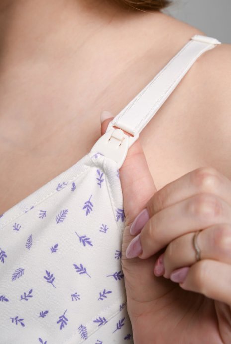 Нічна сорочка Мамин Дім BABY 24124- нічна сорочка для вагітних і мам, що годують. Сорочка виготовлена зі стовідсоткової бавовни з невеликим додаванням еластану. На бретелях є спеціальні кліпси, які забезпечують доступ до грудей для малюка під час годування. Прямий крій робить цю модель зручною для носіння на будь-якому терміні вагітності, а також у післяпологовий період. Це прекрасний вибір як для пологового будинку, так і в якості домашнього одягу - зручна, максимально комфортна сорочка з натуральної, приємної до тіла, дихаючої тканини.