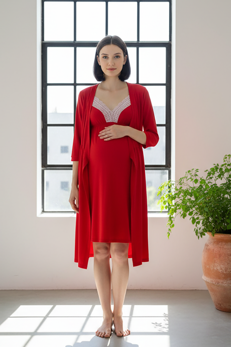 Ночная сорочка для беременных и кормящих красный 895