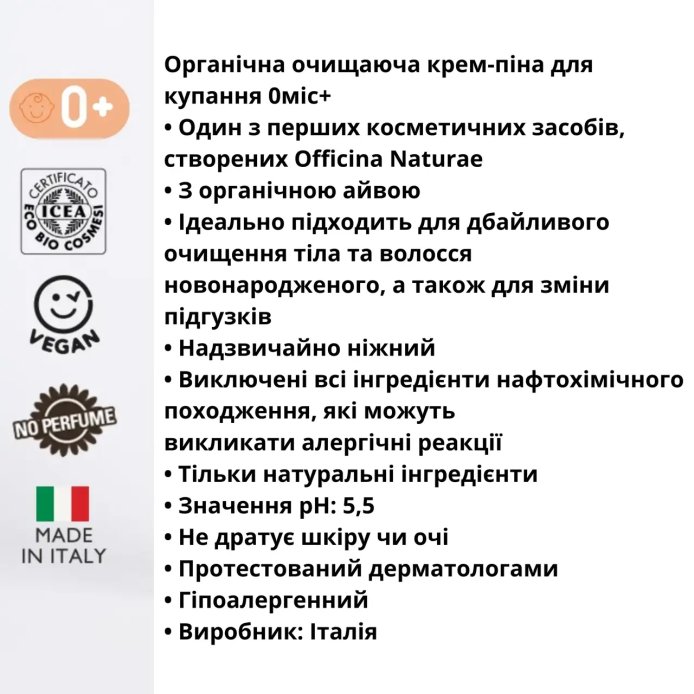 Органічна крем-піна очищаюча для купання 0+ Officina Naturae 200 мл