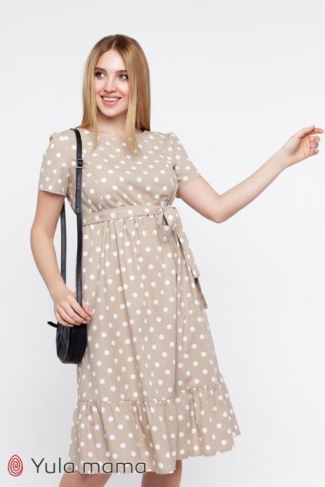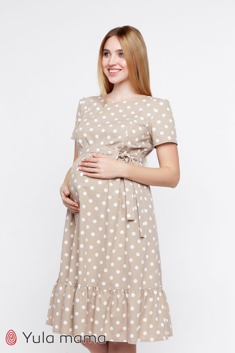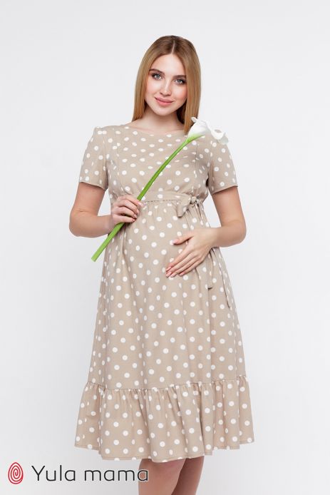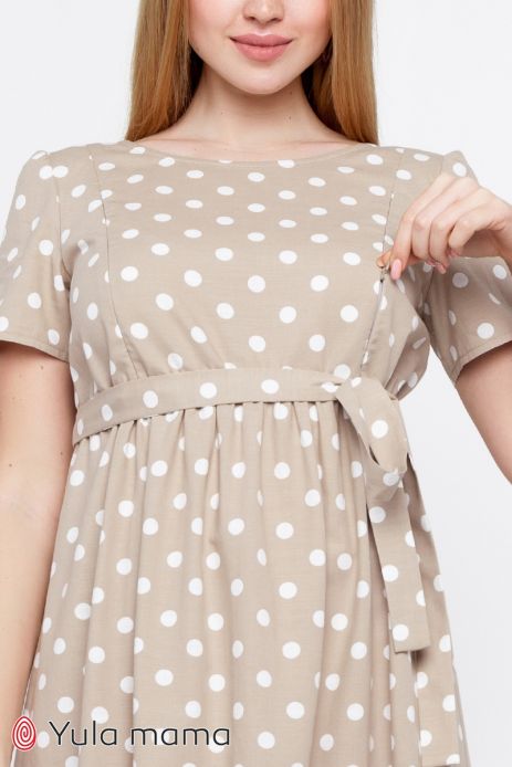 Платье Andrea для беременных и кормящих горох на бежевом DR-20.051
