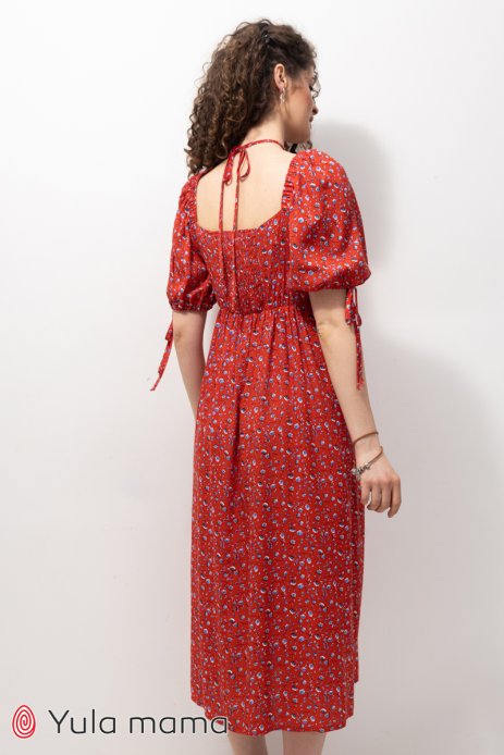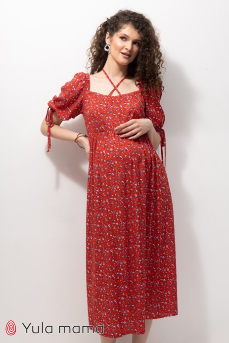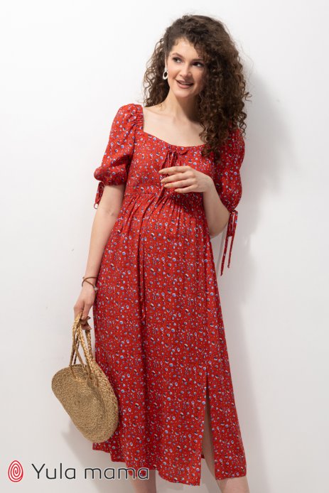 Платье BRIELLA для беременных и кормящих цветы на красном DR-23.051