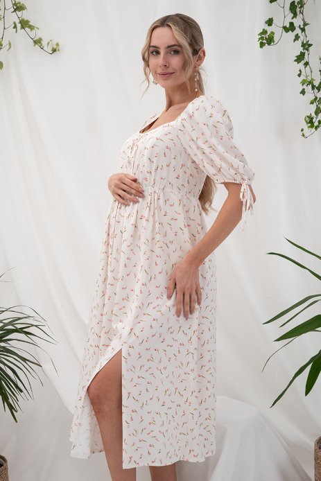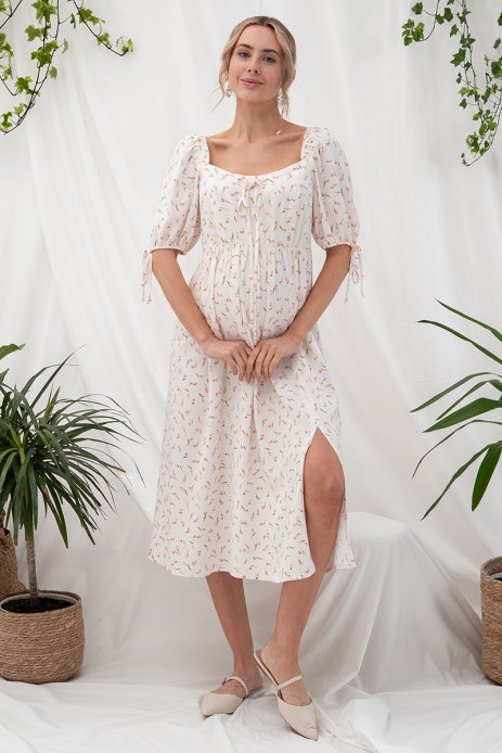 Платье для беременных и кормящих мам BRIELLA тюльпаны на молочном DR-25.052