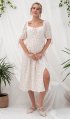 Оздоблення: ефектний розріз на спідниці, зміщений у ліву сторону, зав'язка на шиї (її можна носити як бантик на грудях, як зав'язку на шиї та повністю зняти з виробу).