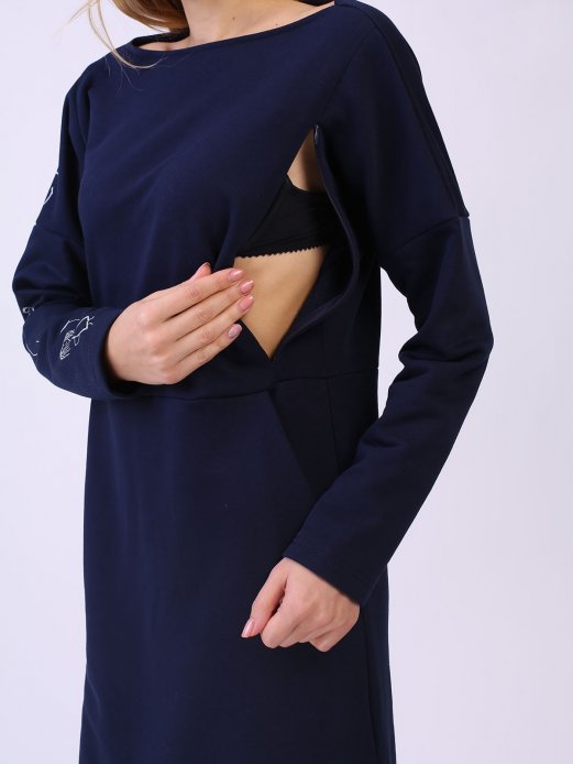 Удивительно стильное и оригинальное платье для беременных и кормящих мам! Максимально комфортное благодаря своему свободному и сдержанному крою, удобное и практичное. Уникальные принты дополняют платье, тем самым делают платье для кормящих мам уникальным ну и конечно цвет, который никогда не выйдет из моды. Платье с потайными молниями для кормления, максимально удлиненными, что очень удобно и маме и малышу. Неотразимая модель платья позволит сохранять женственность, не теряя комфорта и практичности. Дополните свой образ этой моделью из магазина Mamacity!