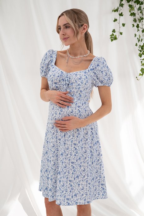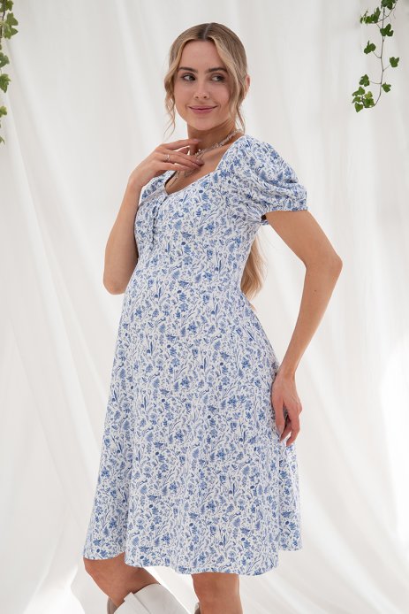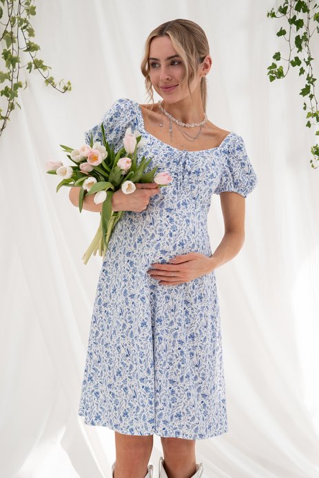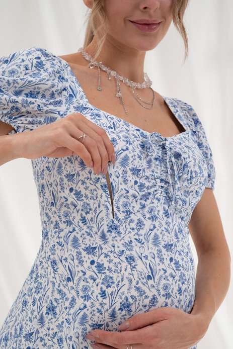 Платье Eileen для беременных и кормящих синие цветы DR-25.161