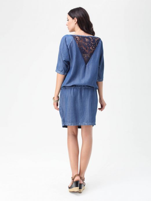 Особый шик - платье с напуском из высококачественного инновационного эко-материала Lyocell. Ткань по тактильным ощущениям напоминает сочетание шелка и хлопка, что дает приятную и не жаркую текстуру. Фасон модели выполнен в актуальном цвете индиго, длина до колен, рукавчик - реглан. Объемный верх платья декорирован изящным кружевом в области груди и на спине, а так же подчеркнут присобранным на бедре поясом-резинкой, благодаря которому можно регулировать длину платья и удобно располагать растущий животик во время беременности. Еще одной приметной деталью этой модели являются удобные карманы на молниях. Такое платье выгодно подчеркивает бедра и делает акцент на ножках, носится во время беременности и после. Его легко комбинировать с различными аксессуарами и украшениями.