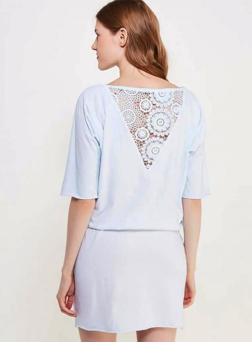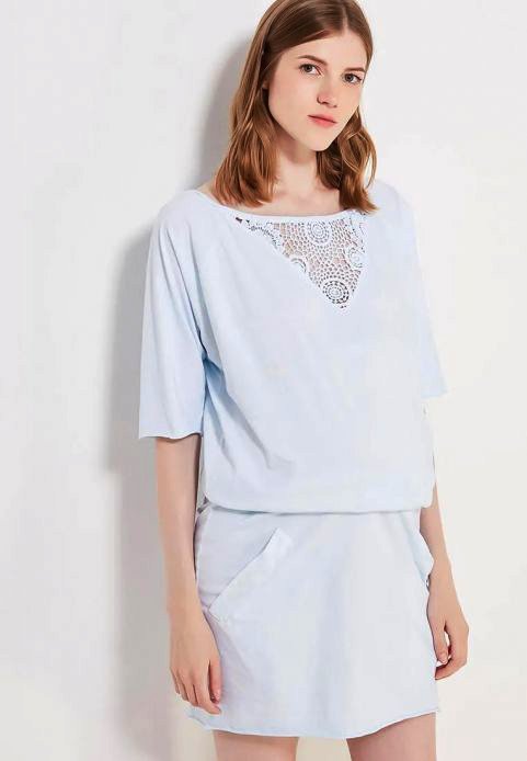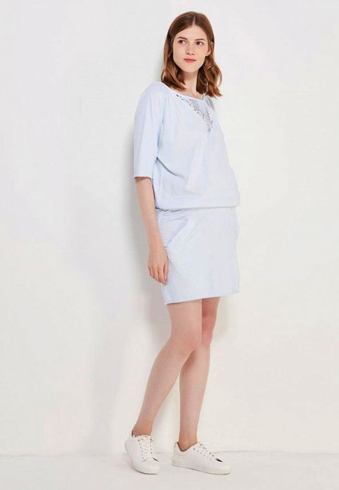 Особый шик - платье с напуском! Выполнено из натурального 100% хлопка. Ткань имеет приятную дышащую и не жаркую текстуру. Фасон модели выполнен в нежно-голубом цвете, длина до колен, рукавчик - реглан. Объемный верх платья декорирован изящным кружевом, которое красиво открывает область груди и спины, а так же подчеркнут присобранным на бедре поясом-резинкой, благодаря которому можно регулировать длину платья и удобно располагать растущий животик во время беременности. Еще одной приметной деталью этой модели являются удобные накладные карманы. Такое платье выгодно подчеркивает бедра и делает акцент на ножках, носится во время беременности и после. Его легко комбинировать с различными аксессуарами. Разбавьте яркой моделью Ваш обычный образ в магазине Mamacity!