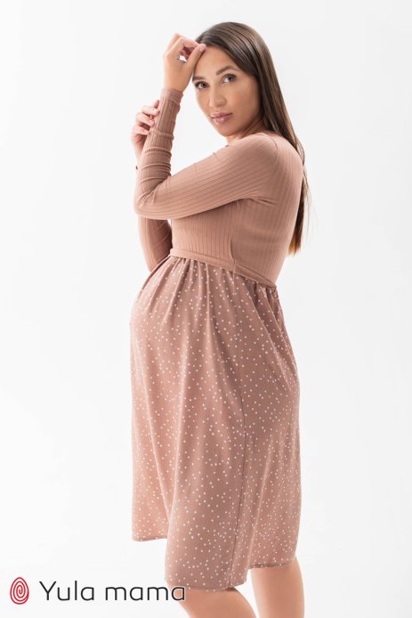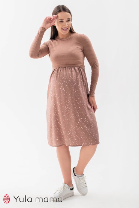 Платье PAULA для беременных и кормящих горошек капучино DR-32.011