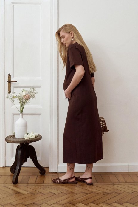 Комфорт, практичність і стиль — усе це поєднує в собі сукня-футболка поло, створена спеціально для вагітних і годуючих жінок. Завдяки прямому крою, модель м’яко огортає фігуру, залишаючи достатньо простору для зростаючого животика та не сковуючи рухів. Такий силует дозволяє носити сукню як під час вагітності, так і після неї.