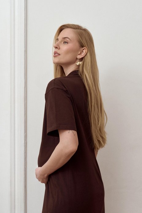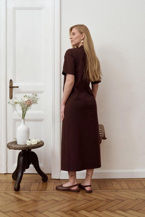 Сукня-футболка поло стане ідеальним вибором для щоденного носіння, прогулянок, домашнього затишку або неформальних зустрічей. Вона гармонійно поєднує в собі жіночність і функціональність — саме те, що потрібно сучасній мамі.