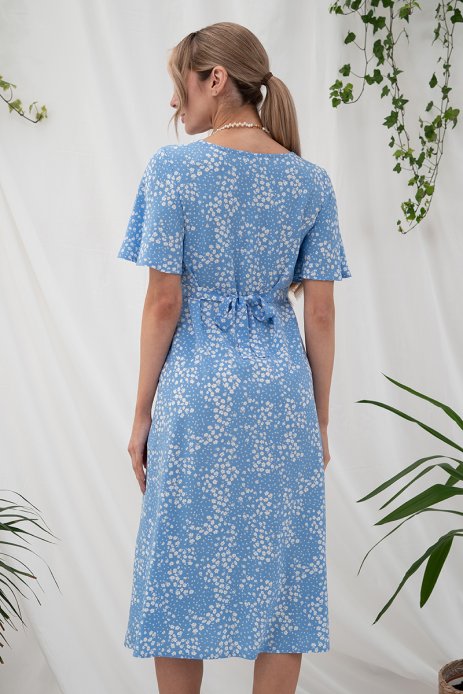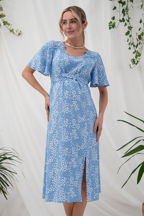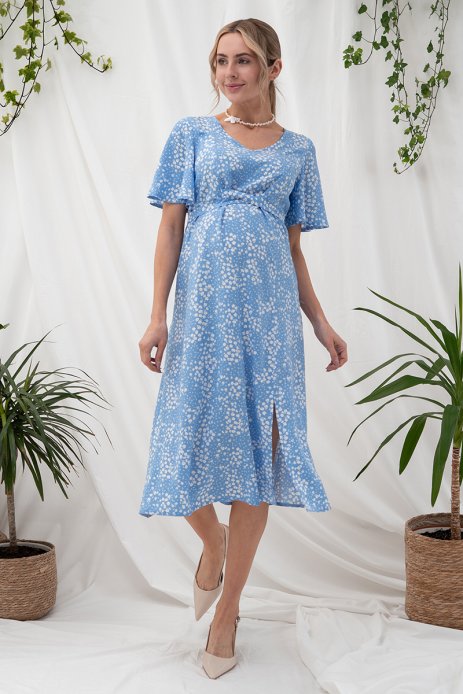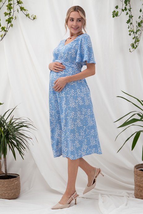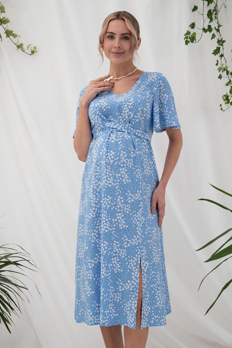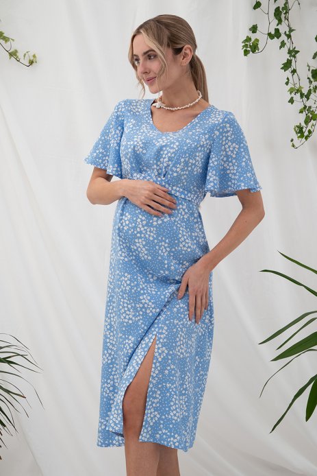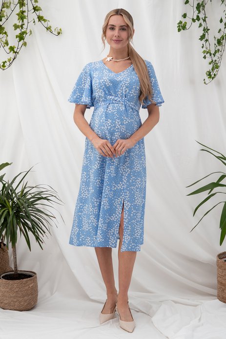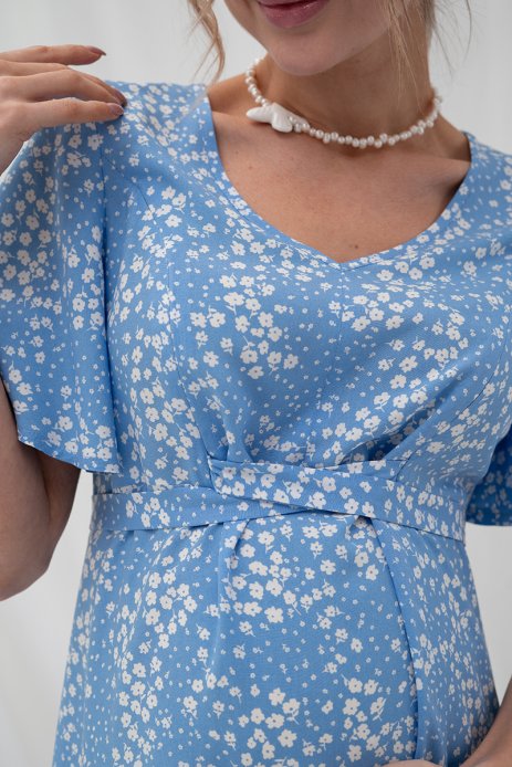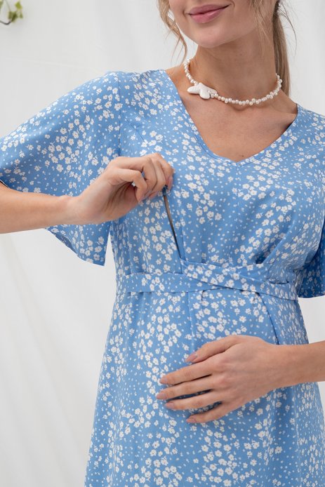 Платье Vanessa для беременных и кормящих цветы на голубом DR-25.022