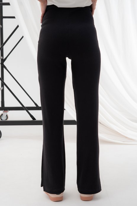 Прямі штани з розрізами для вагітних із трикотажу в рубчик.