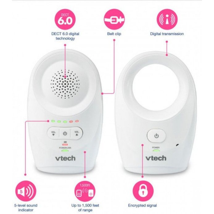 Радіоняня DM1111 - це портативний набір, що складається з передавача та приймача, який можна використовувати для спостереження за дитиною з іншої кімнати . Завдяки сучасній цифровій передачі DECT ви почуєте кожен звук з кімнати вашої дитини - ви нічого не пропустите. Завдяки кліпсі для ременя на батьківському приймачі, будь-яка домашня діяльність буде виконуватися з легкістю. Vtech DM1111 — це цифровий радіоняня із збільшеним радіусом дії до 460 м , тож ви можете легко виконувати свої обов’язки та відпочивати вдома чи в саду.