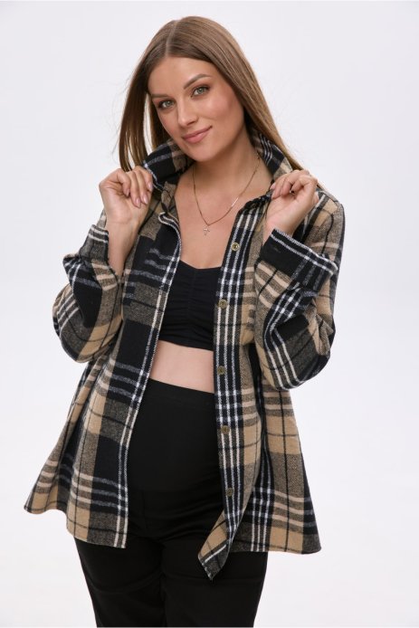 Рубашка клетка для беременных бежевый черный 2355 1758