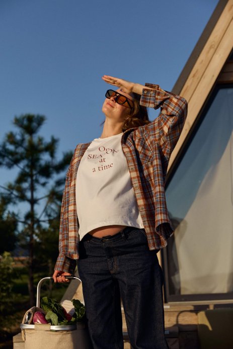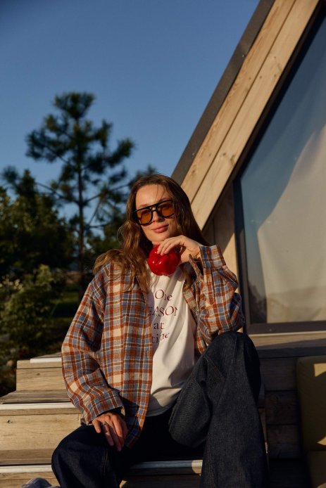 Класичний картатий принт — поза часом, він пасує до будь-якої бази. Накладна кишеня, зручні манжети, м’який відкладний комір — продумані елементи, які створюють образ "теплої сорочки з характером". Носіть розстебнутою, застібнутою, з базовим топом чи світшотом — варіантів безліч.