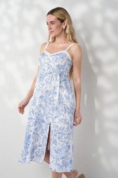 Сарафан Amelie для беременных и кормящих молочный с синим принтом цветы SF-26.062