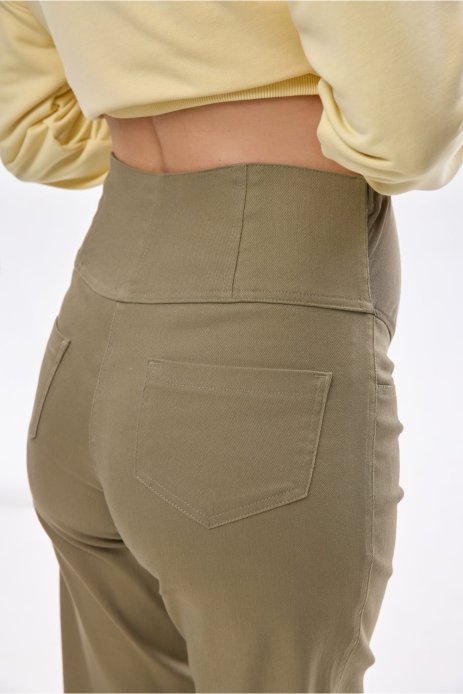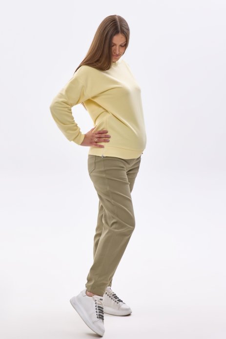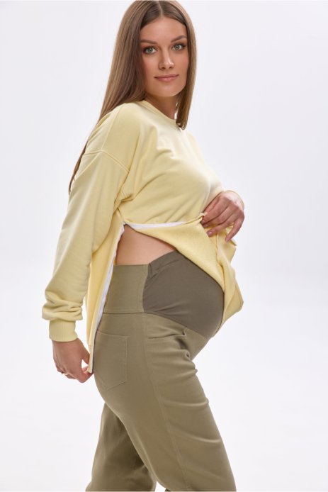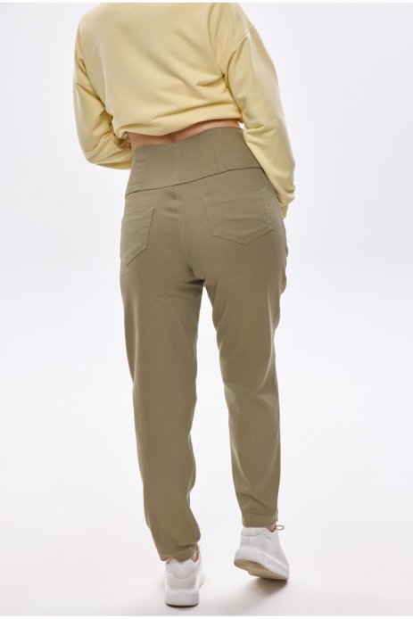 Спеціальна висока трикотажна вставка із регульованою резинкою забезпечує надійну підтримку животика протягом усіх триместрів вагітності. Штани не тиснуть, адаптуються до змін фігури та залишаються зручними навіть у пізні терміни.