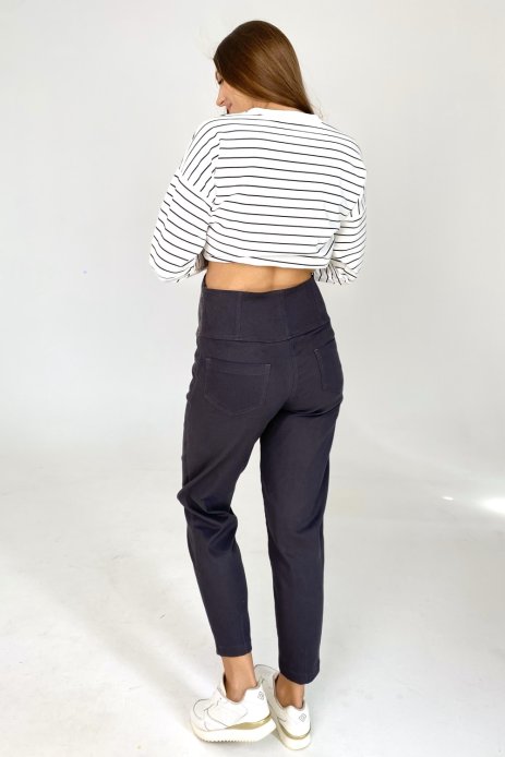 Штани графітового кольору з джинс- коттону - це стильний та комфортний одяг для вагітних, спеціально розроблений для жінок, які очікують дитину. Вони мають високу трикотажну вставку, яка підтримує живіт вагітної, забезпечуючи комфорт та підтримку.