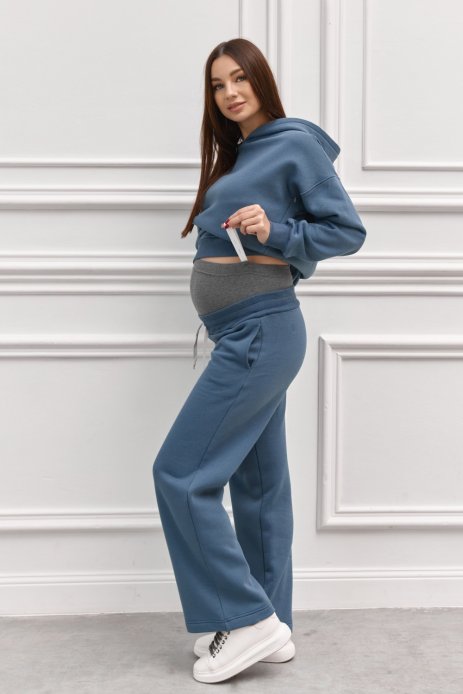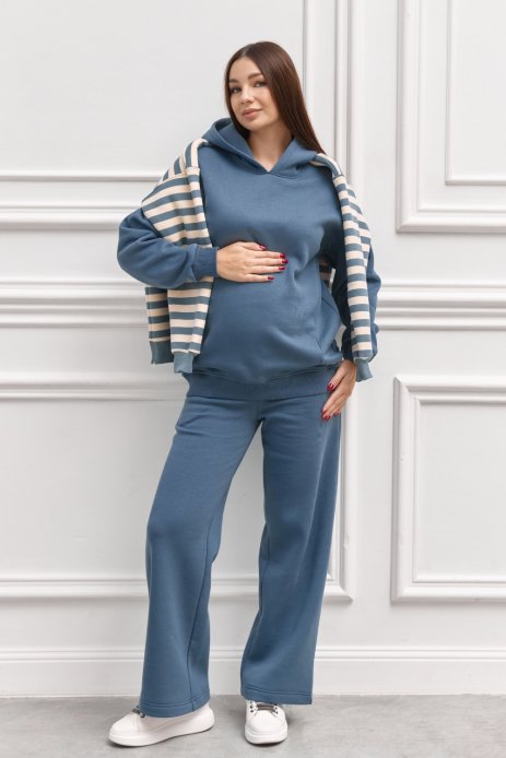 Незамінний темно-блакитний костюм на флісі від Dianora створений для максимального комфорту протягом усього періоду материнства. У комплект входить тепле худі з продуманим секретом для швидкого і непомітного годування та функціональні штани. Особлива перевага штанів: після пологів трикотажна вставка легко відрізається, перетворюючи їх на стильні повсякденні штани. М'який флісовий матеріал забезпечує ідеальне збереження тепла в холодну пору року, роблячи цей одяг для вагітних та годуючих найкращою інвестицією у ваш гардероб.