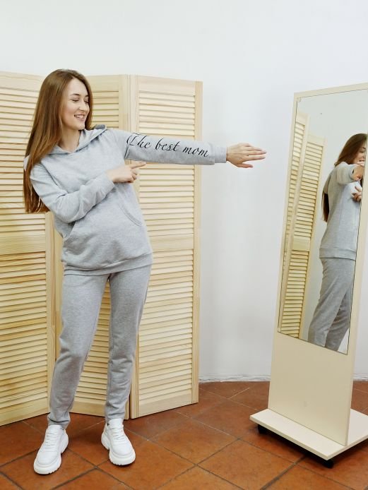 Свитшот для беременных и кормящих с капюшоном по рукаву принт серый 2025 1061