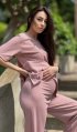 Цей костюм з штанами із пудрово-рожевого трикотажу рубчику відмінно підійде для різних випадків. Він поєднує в собі стиль і зручність, дозволяючи вам виглядати чарівно і впевнено в будь-якій ситуації.