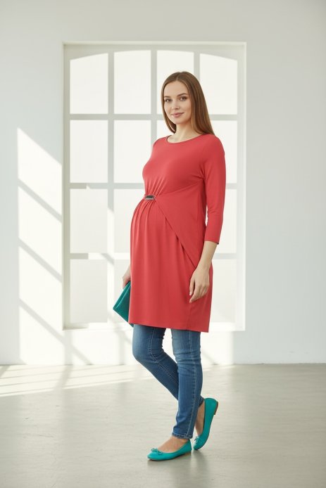 Жіночна і разом з тим дуже ефектна туніка, в ній Ви обов'язково завоюєте звання ікони стилю! Подовжений вільний крій вигідно обігрує фігуру, надаючи витонченість силуету. Виріз - човник і рукавами 3/4, джерсі з еластичної віскози, гарантує максимальний комфорт. Незрівнянною прикрасою виробу є - декоративна пряжка на поясі з делікатними складками в середині. Створюйте вишуканий комплект на базі цієї туніки, а доповнивши його аксесуарами, Ви отримаєте стильний наряд!Розбавте яскравою моделлю Ваш звичайний спосіб в магазині Mamacity!